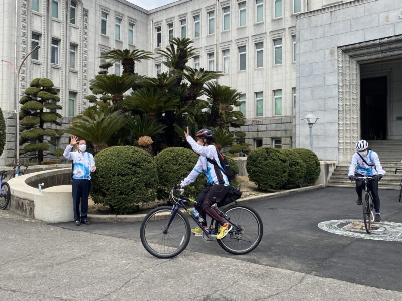 仲の良さそうなお父さんと息子さん、台湾一周と四国一周を既に完走された方、女子三人の『あいあいチーム』、高知工科大学サイクリング部チーム、九工大サイクリング部チーム……みなさん、頑張って!加油!!