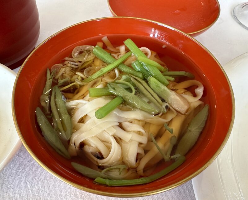 稲庭うどんの上に大好きなじゅん菜がたくさんのっています。