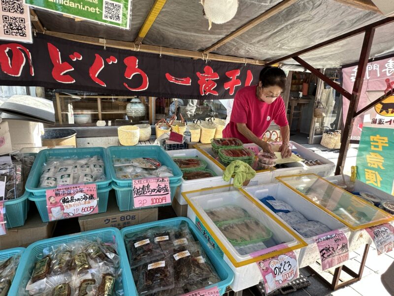 当時は、朝早くから道の両脇におばあちゃんやおじいちゃんたちが獲ってきた海産物を前に広げて座り込み、たくさんのお客さんと値引きの掛け合いをしていた様子が記憶に残っています。