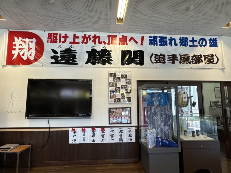 穴水は追手風部屋相撲力士・ 遠藤関の出身地のため、駅前にのぼりが立ち、資料館もあったので、電車の待ち時間の間に見てきました。