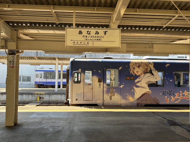 永井豪記念館にも立ち寄り、しっかり観光したあとは、のと鉄道七尾線で和倉温泉に向かおうと、穴水に向います。