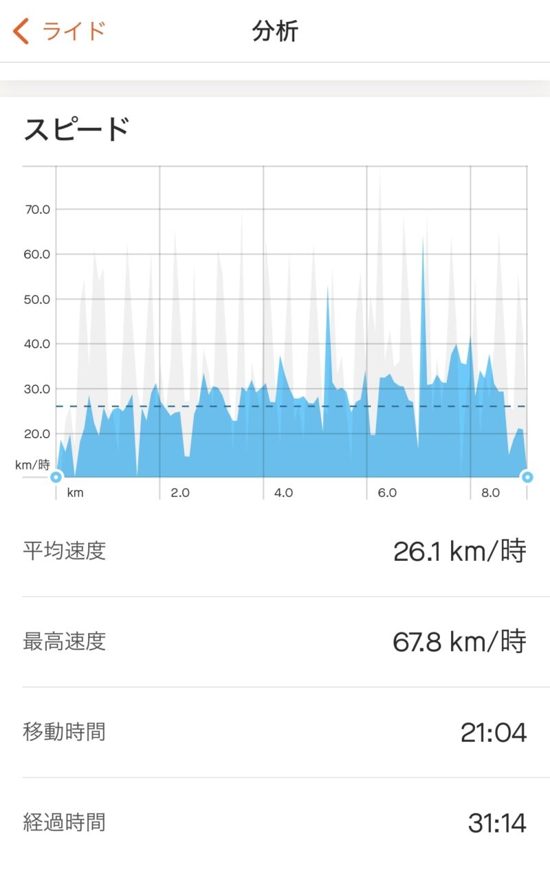 流石になにかの間違いだと思うけれども、気分的にはかなりのあいだ時速35以上が出ていた感じで飛ばすことができた気がしています。