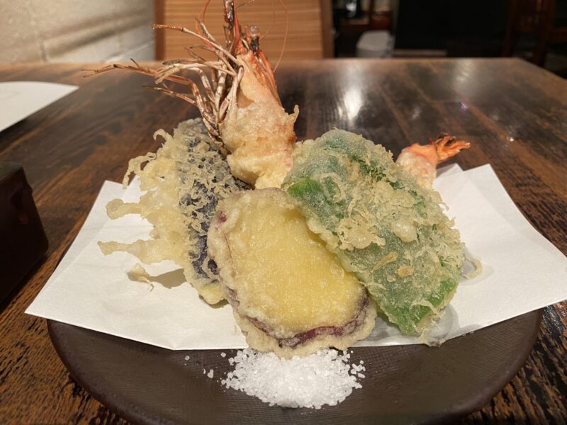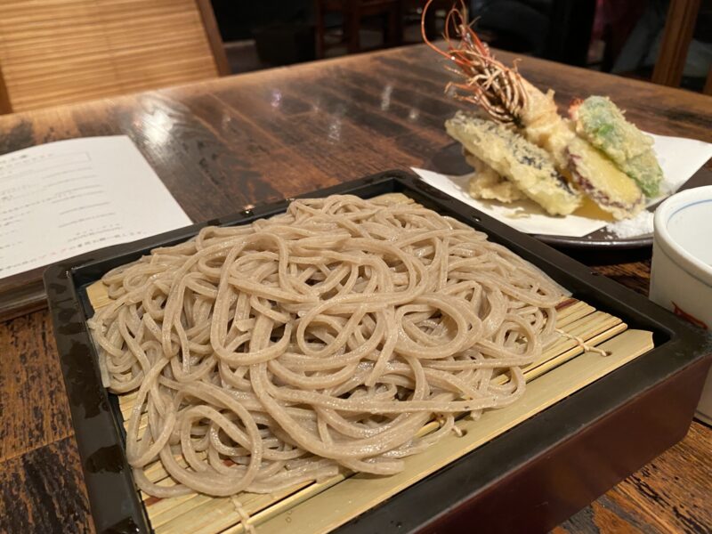 お蕎麦やさんの店内はとってもオシャレで、天ぷらがの海老が大きくてゴージャス!
