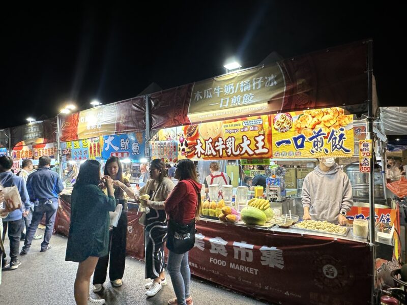 とにかく広くて、結構歩くのに大変でしたが、夜市も2箇所設置されていて、疲れたら座って食べることができます。