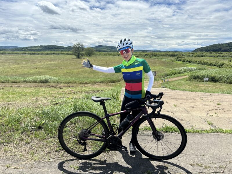 やっぱり晴れているとどこで写真を撮っても映える!朝から太平洋がキラキラと輝いていて、空の青と一面に広がる緑、どこまでも続く一直線の道をサイクリングしながら、「北海道はでっかいど〜」なんて昔どこかで聞いた言葉が心にこだましていました。