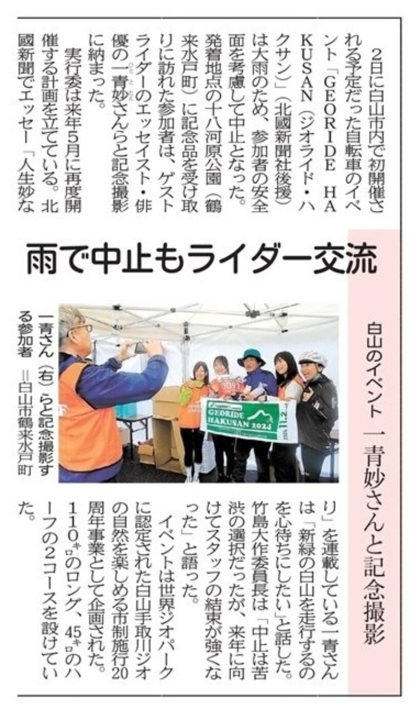 11月2日に開催予定だった『GEORIDE HAKUSAN 2024』。