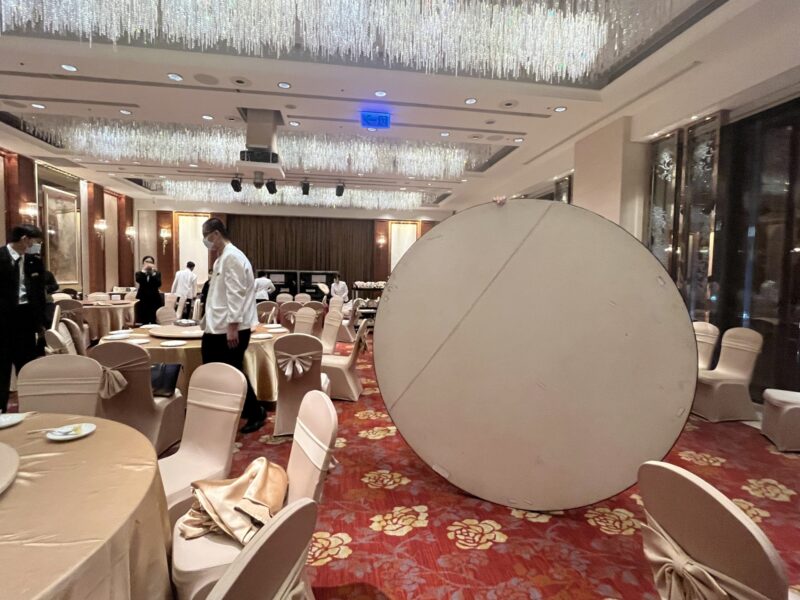 でも……。まだ食事をしている横でお皿に残った食材は次々と持ち帰り用に包装され、ついにはテーブルまで外されてどんどんと片付けが始まりました!