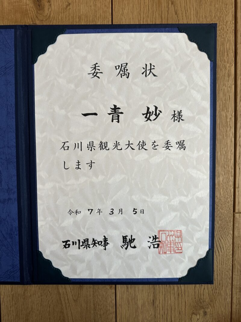 母のルーツがある石川県から、このような大役を仰せつかり、本当に光栄なことです。