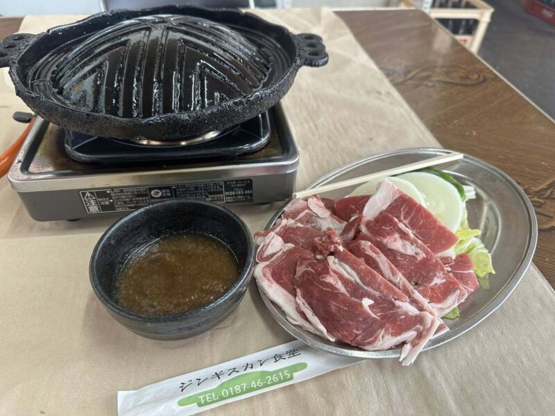 二食目は乳頭温泉に行く途中の「ジンギスカン食堂」。雪道を恐る恐る進んでいき現れた建物のガラス戸を開くとモクモクとした空気と一緒に若者の「マジでうまい!」の声が聞こえてきました。ますます期待が高まり、焼けたお肉をタレにつけて食べたら本当に美味しい〜!「タレがすっごい美味しいから」と言われて来た甲斐がありました。(お肉も柔らかくて美味しいです)ごちそうさまでした。