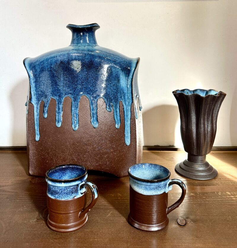 どれもすてきな作品ばかりで、しばらく見入っていましたが、気に入ったマグカップやおちょこを選び、ピアスも購入。ピアスは渡邉葵さんの作品で、青と金の小ぶりなもので、どんな場面にも似合いそうでつけるのが楽しみです。