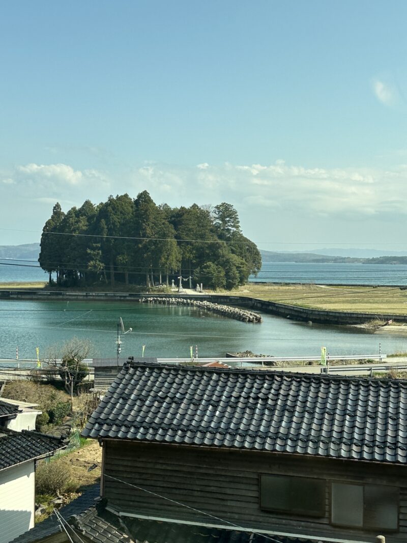 七尾から穴水までの間は6駅——和倉温泉、田鶴浜、笠師保、能登中島、西岸、能登鹿島——あり、カキの養殖場、黒い瓦屋根の家が連なる「中島漁港」、パワースポットの「鹿島神社」、地震でびくともしなかった「ボラ待ちやぐら」などなど、それぞれの地域の特徴を語り部の方が解説してくださいます。