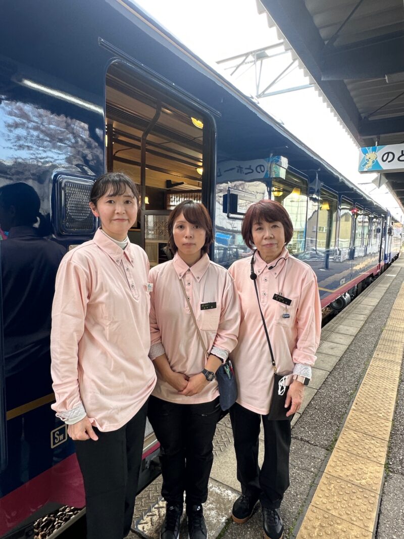 能登半島には多くの伝統文化があります。伝統の保存と継承といっても、簡単に解決できるようなことではありません。伝統と同様に、震災体験を語ることは後世の未来につながることでもあり、「のと鉄道 震災語り部観光列車」の存在意義はとても大きく、重要だと感じました。現在の語り部は宮下左文さんと牛上智子さん、坂本藍さんの3人です。昨年(昨年は団体のみ)から週末になると震災語り部観光列車に乗り続けてきたお三方に、改めて敬意を込めてお礼申し上げます。