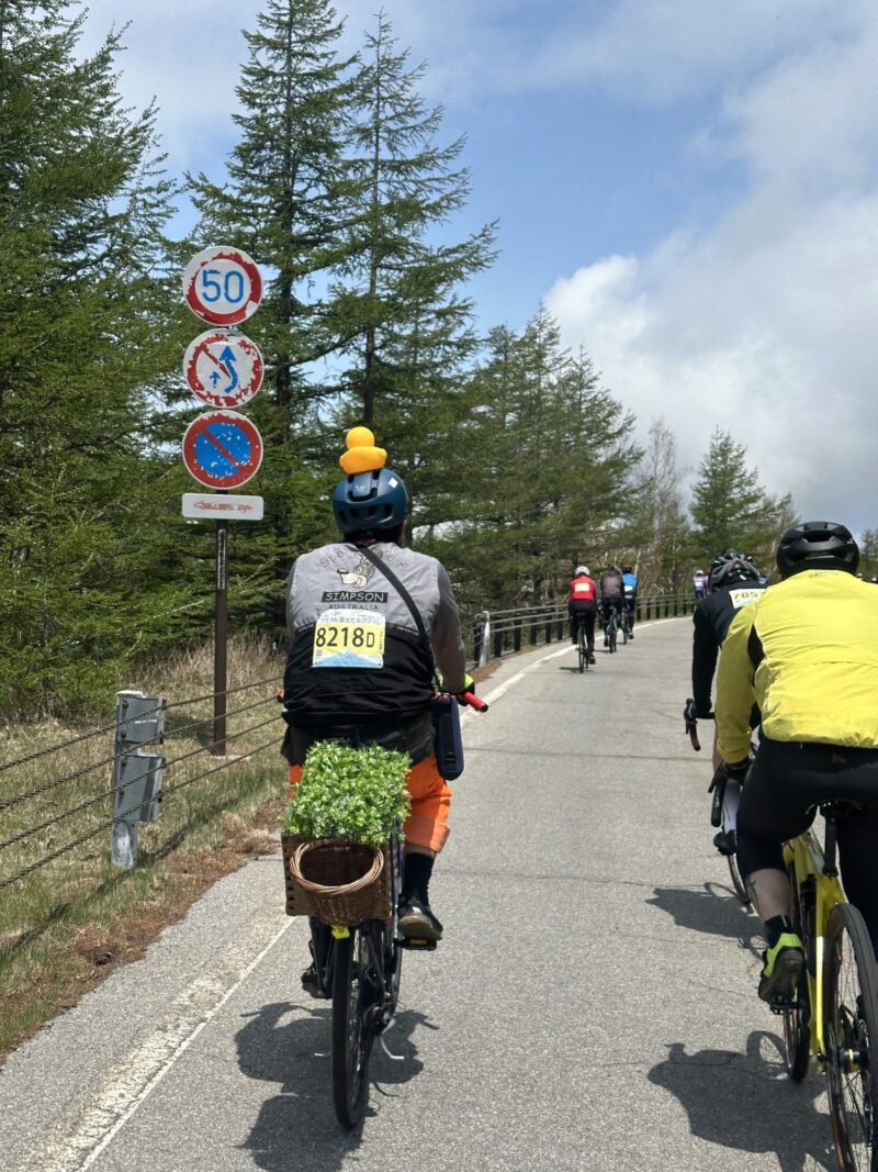 私のようなファンライドに近い参加者は、カゴにグリーンを載せたり、仮装して走っている人がいたりして、みんな楽しそう。