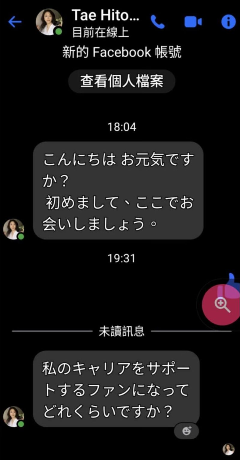 本物の私と全く同じ写真と内容なので、一瞬私自身も見間違えてしまいました。当該のアカウントはすでに閉鎖されたようですが、引き続きなにかおかしなメッセージが届くようでしたらご一報いただけると助かります。