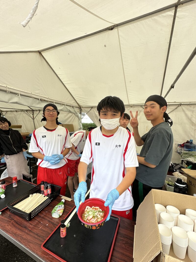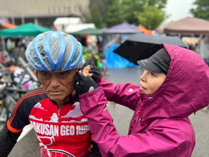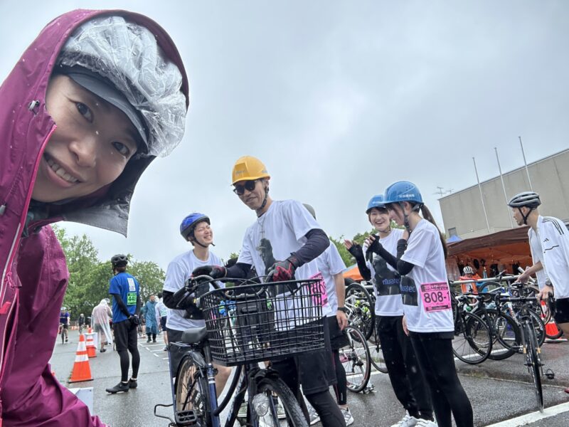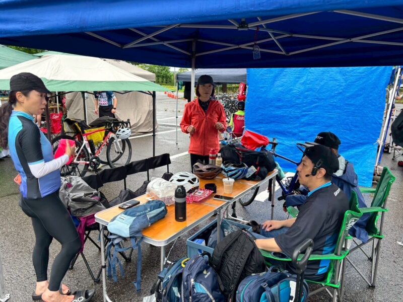 前日から梅雨前線が活発となり、朝から降ったり止んだりのあいにくのお天気でしたが、会場は熱気に包まれ、張ったテントでみんな和気藹々と再会を喜んだり、準備をして、ひとりおおよそ2周を目処に、交代していく戦法を立てます。