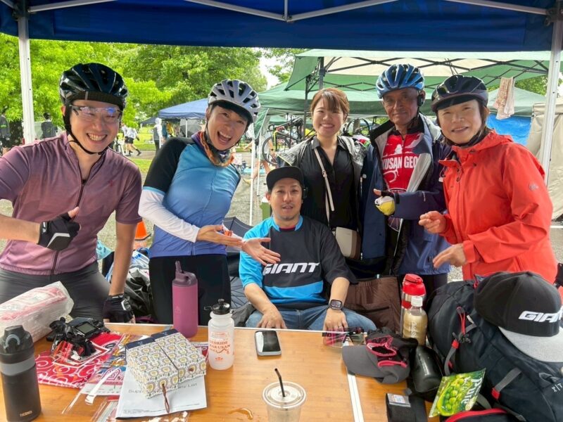私は、ジャイアントストア金沢店を通して知り合ったサイクリスト3名と一緒に、4人チーム編成の「ライドを愛する会」としてエントリーしました。ちなみに、エンデューロレース全員初参加というのに、大胆にもチーム全員が50歳以上限定のフォーエバーヤング賞を狙う意気込みで、チーム監督に金沢店の濱口店長が就いて下さり、やる気満々で出陣です!