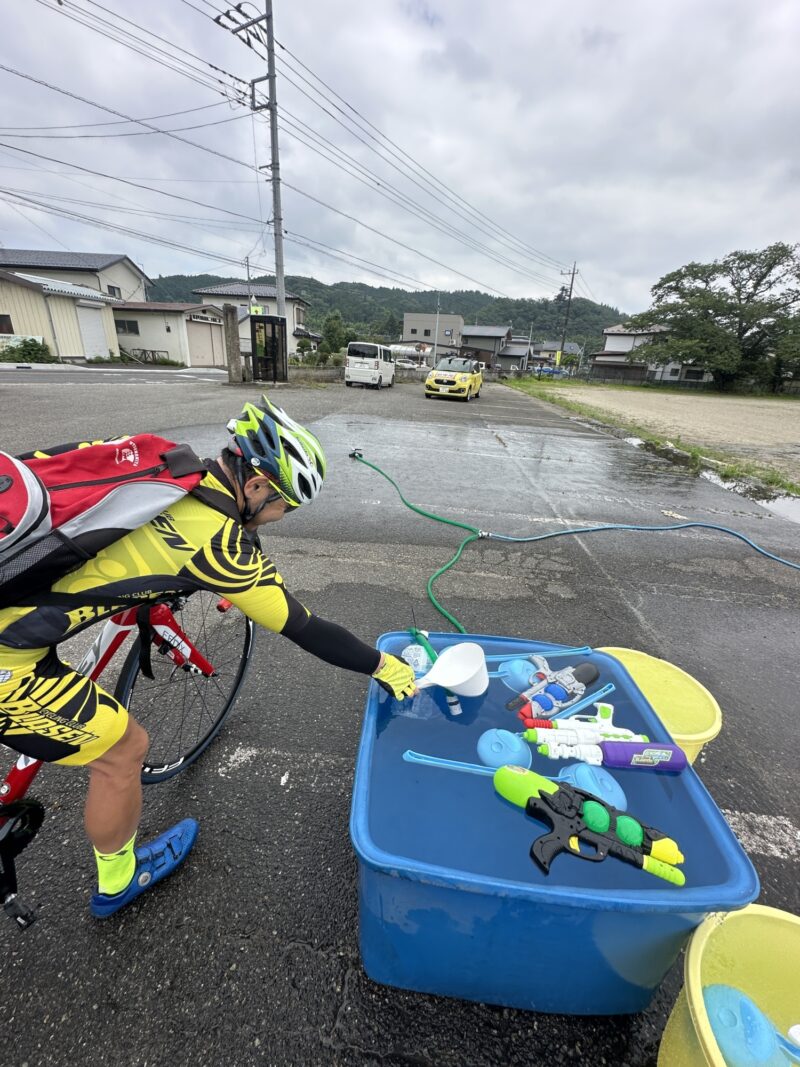 最後のエイドステーションとなる白河市と栃木県那須町の県境の「境の明神」を過ぎ、暑さ対策に設置された「サイクルオアシス」で水を浴び、いよいよゴール。