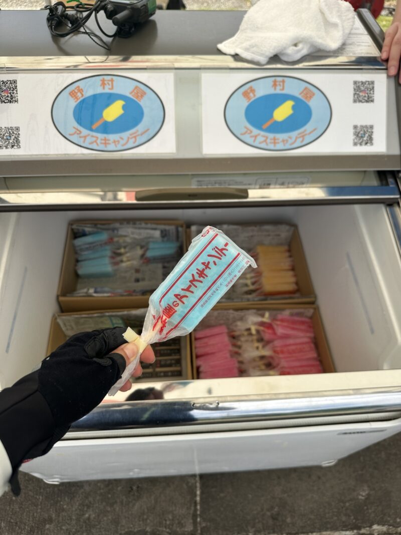 折り返し地点となる「白河小峰城」で提供していたのは、創業が昭和初期の野村屋のアイスキャンディー。気温が高くなってきたので、素朴な味が体全体に染み渡りおいしい。