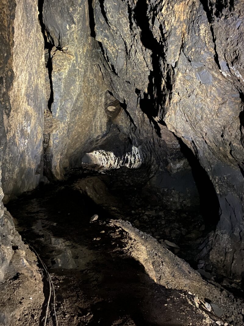 岩肌から、江戸時代の手掘りと明治時代の機械掘りの違いや鉱脈の見つけ方などなど、