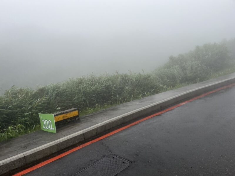 800メートル上るのですが、半分くらいのところから雨が降り始め、霧の立ち込める真っ白の世界となり、なかなかハードな環境となりました