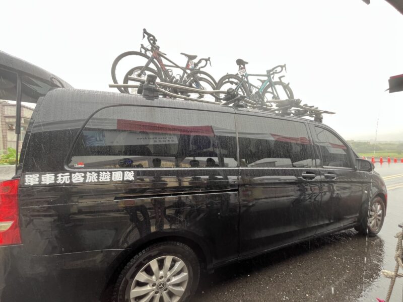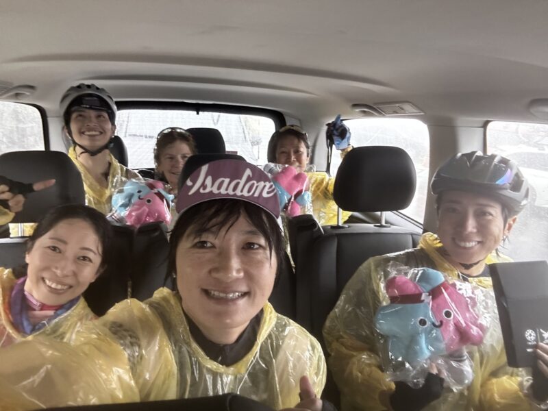 雨風が増す中の下山は危険だということで、ゴール後は車の屋根にバイクを載せて、みんなでスタート会場に戻ってきました。