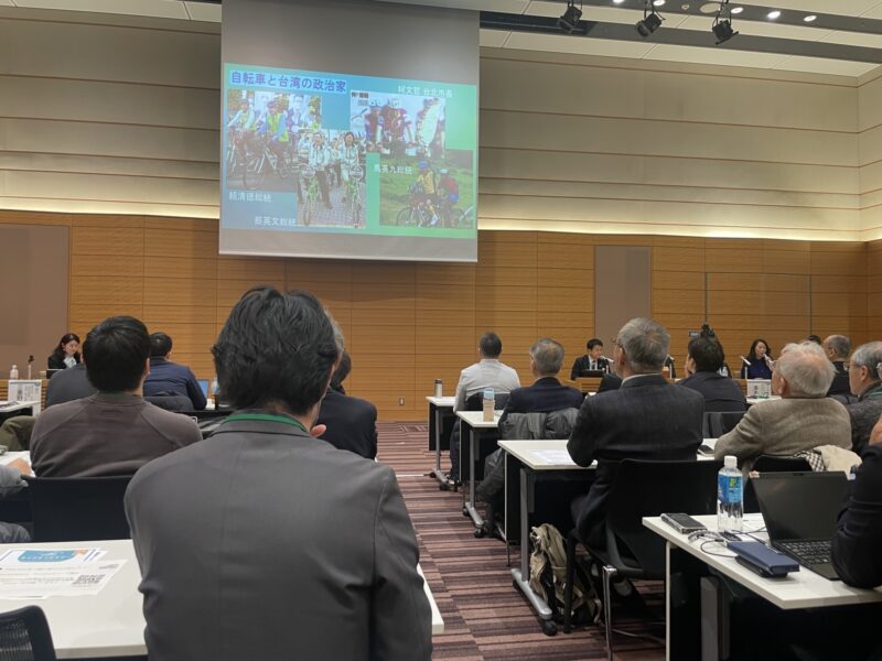発表時間は5分と限られたものだったので、台湾の自転車新文化、その象徴である台湾一周=環島というサイクリングが根付いたことで、自転車に乗ることに対する台湾社会の認知度や期待度が上がった結果、多くの政治家が有権者へのアピールもあって積極的に自転車に乗る姿を見せるようになり、台湾全体に自転車に対する評価が高まった、ということをお話ししました。