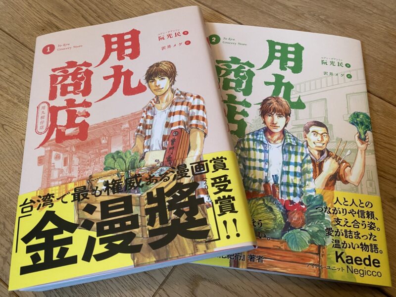 2022.01.10 台灣漫畫『用九商店』 お知らせ 台湾 在日本很受歡迎的「用九柑仔店」。 很好看~! 台湾の漫画『用九商店』(原題:用九柑仔店/ルアン・グアンミン (著), 沢井メグ (翻訳))をご恵贈いただきました。ありがとうございます。 台湾の友人からは、台湾らしさが詰め込まれたほっこりとする内容だと聞いていて、とても気になっていた作品です。 実写化のドラマ『いつでも君を待っている』も大好評みたいなので、漫画の次はドラマも見ようかな。 ちょっと曇っている連休の最終日、ゆっくり楽しみたいと思います!