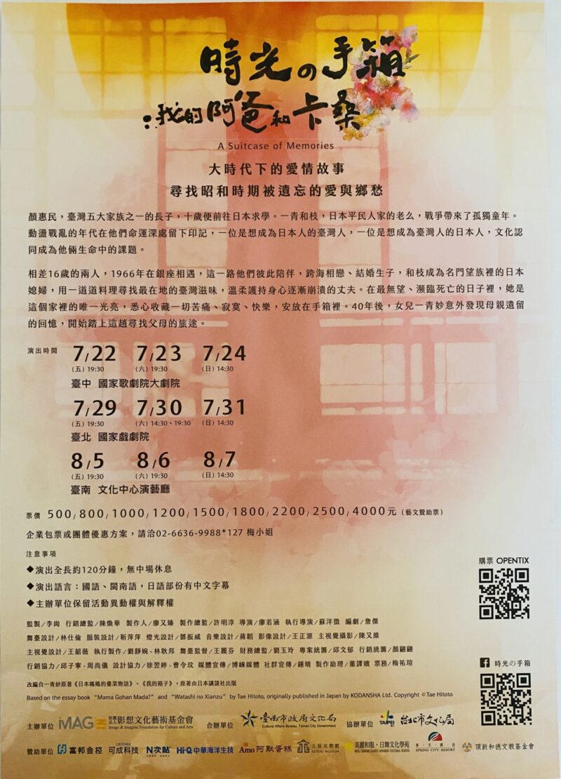 舞台劇《時光の手箱:我的阿爸和卡桑》改編自我的回憶著作《我的箱子》和《日本媽媽的臺菜物語》。