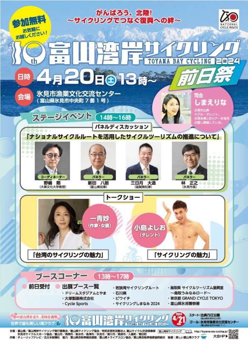 さあ、明日はいよいよ本番。富山県と石川県、そして両県外の約40名で氷見をスタートして、七尾から中能登町、羽咋、そして氷見へと走りたいと思います。ずっと続いていた雨予報は曇りに変わり、安心して走ることができそう。『頑張ろう北陸!つながる富山と石川 復興応援ライド』のスッテカーをつけて走ります。